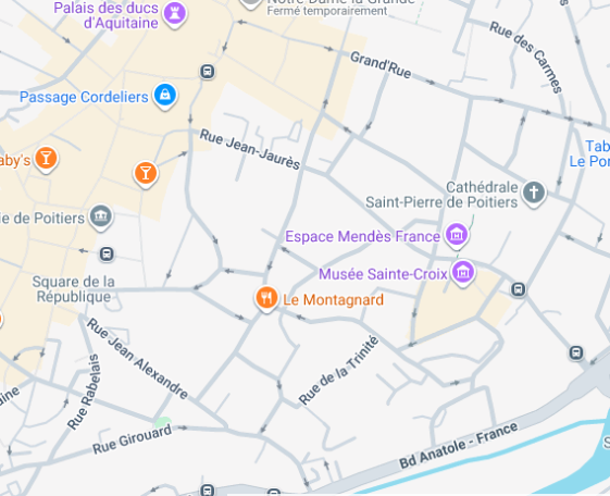 À pied : Le centre de Poitiers est compact et facilement accessible à pied. Se promener permet de découvrir les rues pittoresques et les sites historiques.